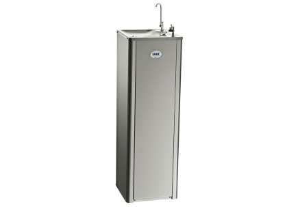 Modelo tradicional de coluna e apresentado na cor inox; permite a fácil adaptação em ambientes onde há grande circulação de pessoas.